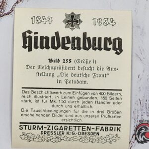 #1032 – Cigarette card – Hindenburg 1847-1934 – Bild 255