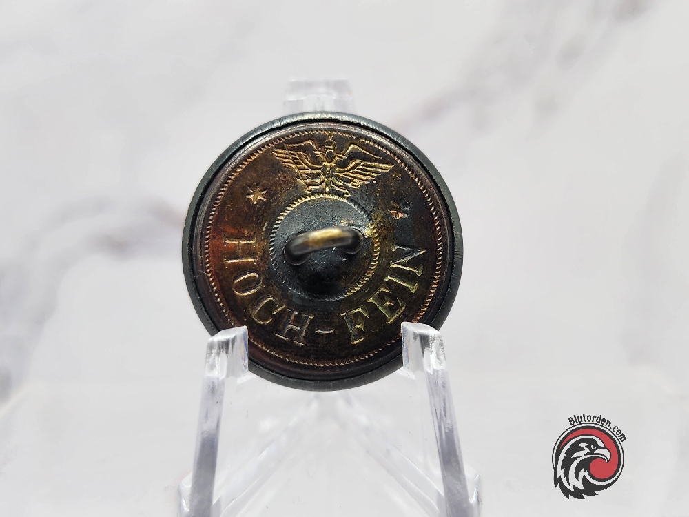 Buttons marked “HOCH-FEIN” were generally produced as higher-grade items, often privately purchased or intended for better-quality uniforms, including administrative, political, or civilian attire.