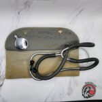 The stethoscope remains complete and displays well, with honest age and service wear. The pouch also remains in solid condition, showing expected period use and storage wear.