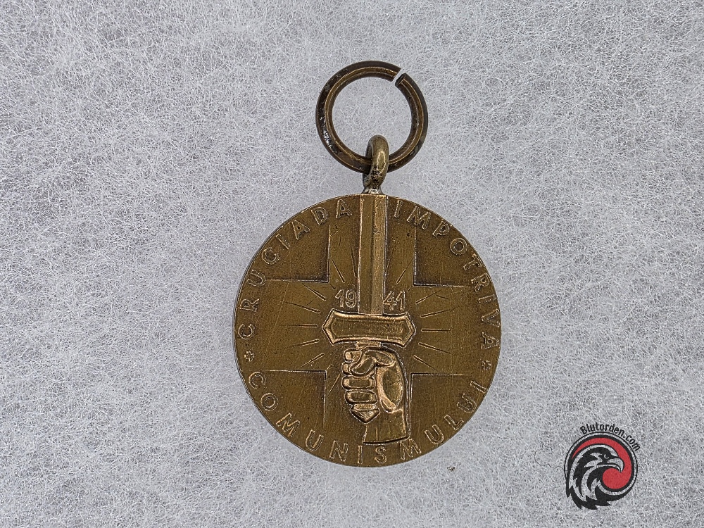Original World War II Romanian “Crusade Against Communism” Medal (Cruciada împotriva comunismului), instituted in 1942 and awarded to Romanian and Axis personnel who participated in the Eastern Front campaign beginning in 1941.