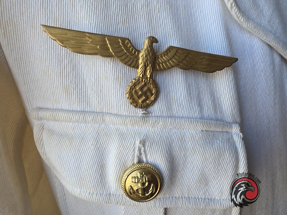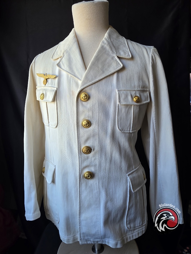 Original World War II Kriegsmarine Summer Officer Tunic in white drill fabric, a classic warm-weather garment worn by German naval officers.
