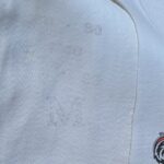 The interior shows a faint original marking, now largely faded with age, along with a hand-applied sewn number inside the lining, likely for identification or inventory purposes during service.