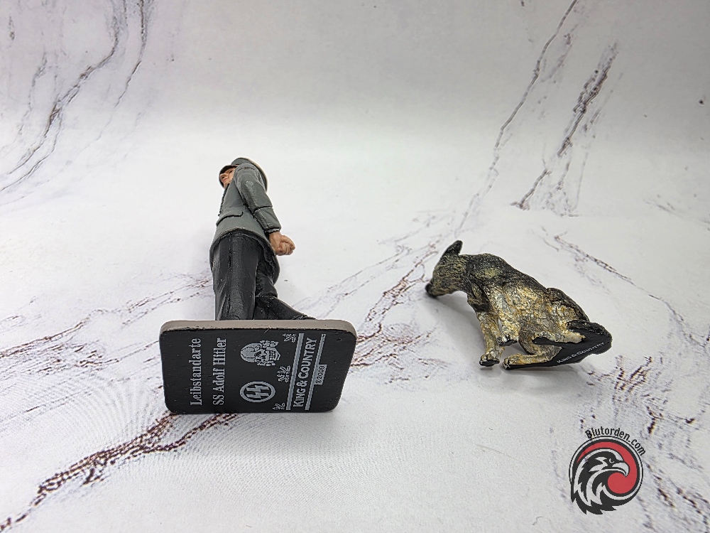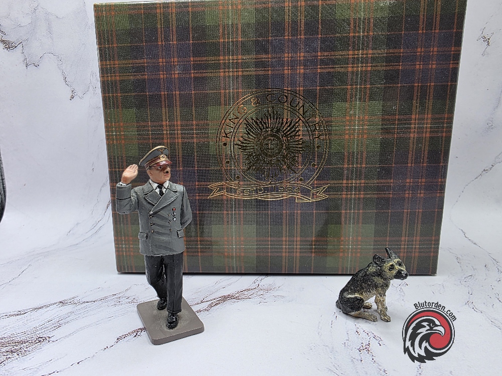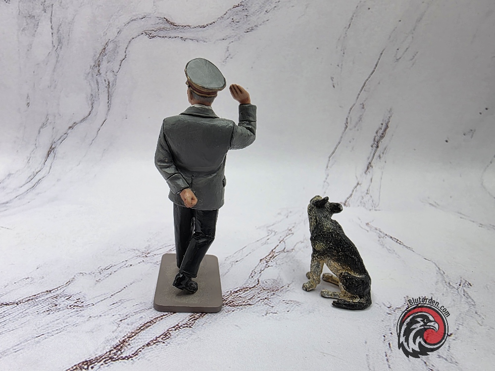 Highly detailed collectible figurine set by King & Country, depicting Adolf Hitler with his dog Blondi.
