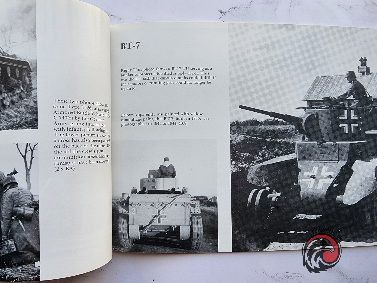 This is Captured Tanks Under the German Flag: Russian Battle Tanks, by Dr. Werner Regenberg & Horst Scheibert, published by Schiffer Military. This illustrated reference explores Russian tanks that were captured, rebuilt, modified, or repurposed by the German forces during WWII — especially the T-34 variants marked with German crosses and fitted with German equipment.